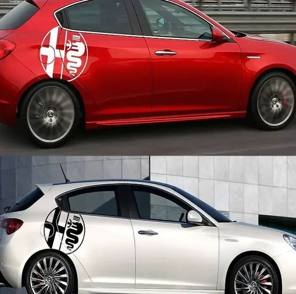 2 Stück Auto Seitentür Aufkleber für Alfa Romeo MiTo Giulia Giulietta 147 156 159 166 Auto Vinyl Film Aufkleber Auto Tuning..