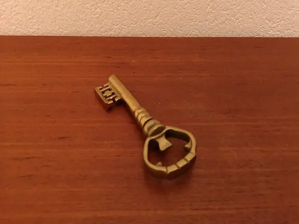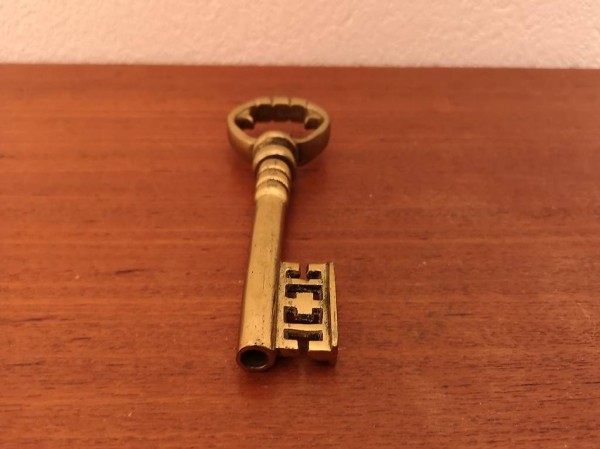vintage Korkenzieher / Flaschenöffner mit Verschlusskappe in Form eines antiken Schlüssels. Vermutlich wurde der