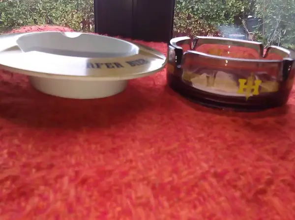 COPPIA POSACENERE BIRRA HOCHDORF ..UNO IN ORNAMIN ED UNO IN VETRO A SOLO