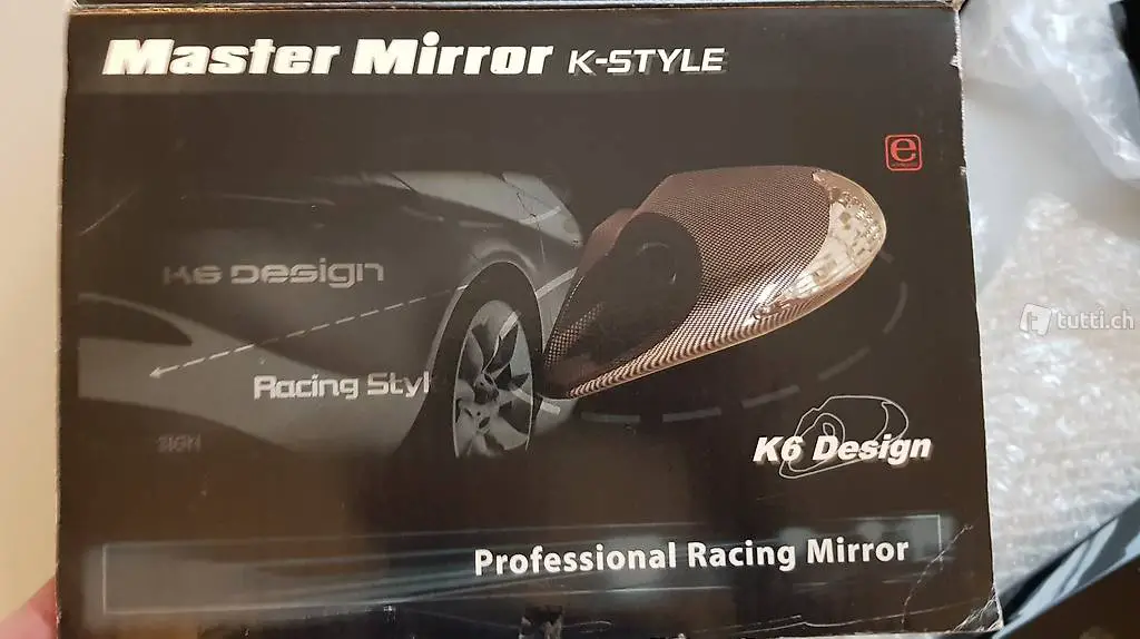 Sportspiegel in Tropfenform in schwarz uni lackiert.