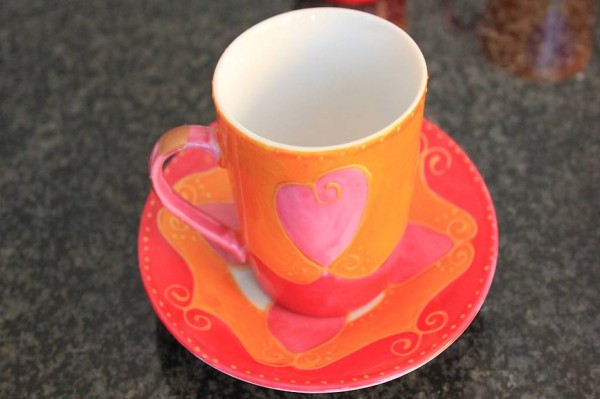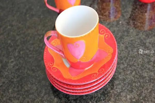4 sehr schöne Herz-Kaffe/Expresso Tässeli mit Unterteller, super Zustand!