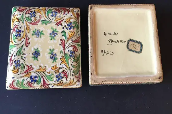 Scatola quadrata ceramica A.M.A. PESARO Italy AMA Artigiani Maiolicari Associati 60.