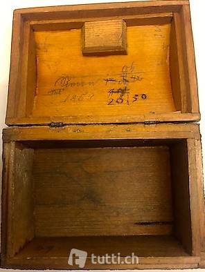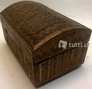 Schönes Holzkistchen mit Strohornamenten belegt. Mitte 19. Jh. Diese seltene Technik war in Baden,im Aargau, üblich.