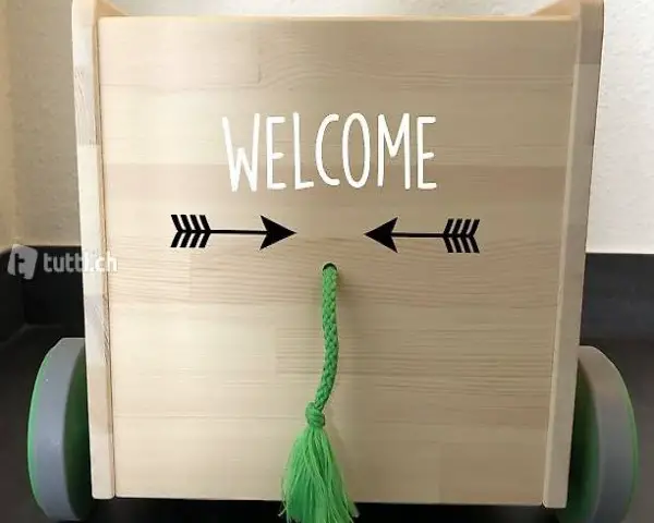 Spielkiste aus Holz von Ikea mit grünen Rädern, nicht zusammengeschraubt