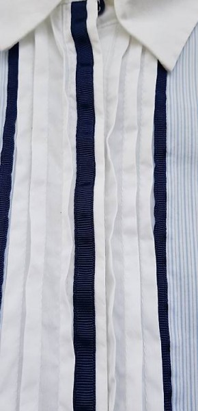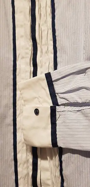 Knopflochleiste wie auch Knöpfe sind aufwendig verdeckt durch das elegant gelegte Beleg.