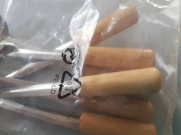 Kleine Saucen Löffel mit Holz Griff und Metall.