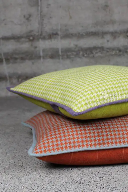 Cavallo Coco» besticht durch ein Hahnentritt-Muster auf der Vorder- und feinen Nadelstreifen auf der Rückseite. Der farbig abgesetzte Keder verleiht ihm das gewisse Etwas. Grösse: 40x50 cm.