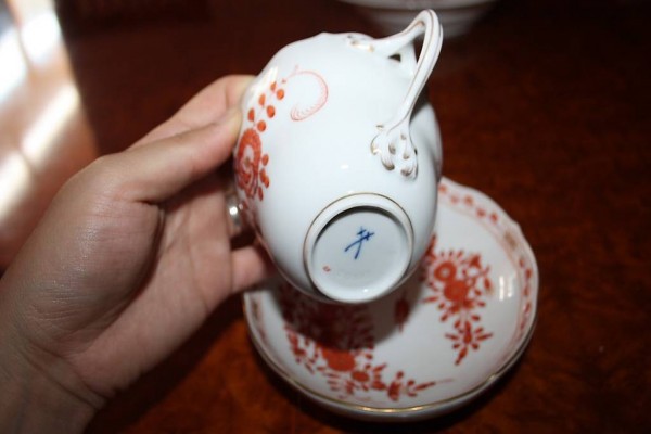 Meissen Mokkaset 2 tlg. organge Blumen