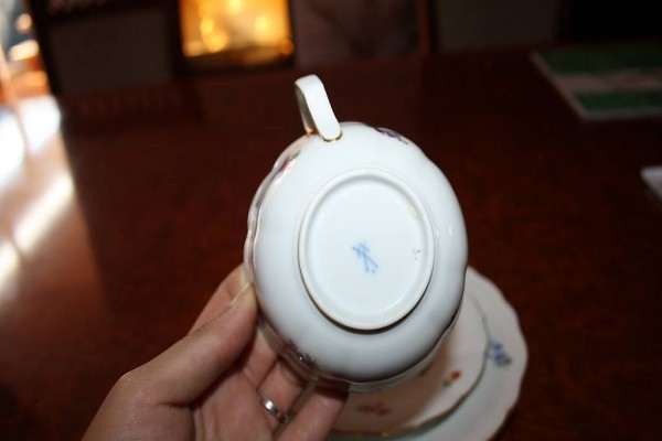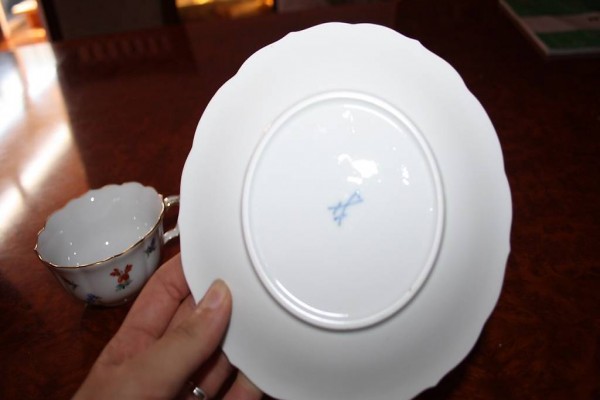 Meissen Mokkagedeck 3-tlg. Blumenmuster Goldrand