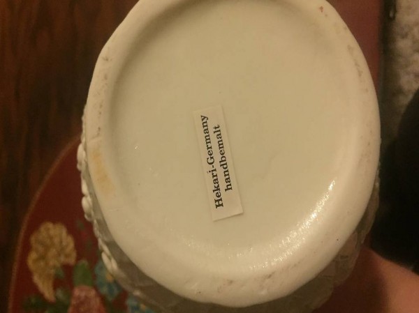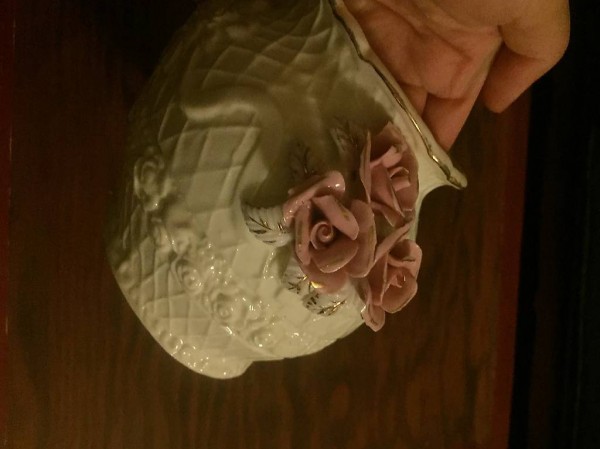 schöne Vase /Gefäss mit Rosen weiss/pink