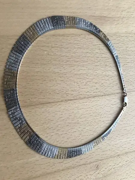 Ich verkaufe ein Collier in 925er Silber vergoldet. Es liegt wunderschön auf dem Hals und kann für ganz viele Gelegenheiten getragen werden. Sehr spezielle Machart siehe Bilder. Es ist auf zwei Seiten mit dem Wertheitsstempel 925 gestempelt. Dazu kämen 5.- bei Versand. Viel Freude beim Kauf!