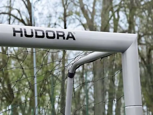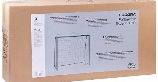 Das Fussballtor Expert 180 von Hudora besteht aus einem stabilen, pulverbeschichteten Stahlrohrrahmen mit 75 mm Ø von Pfosten und Latte. Die Hintertorstangen haben einen Durchmesser von 32 mm.