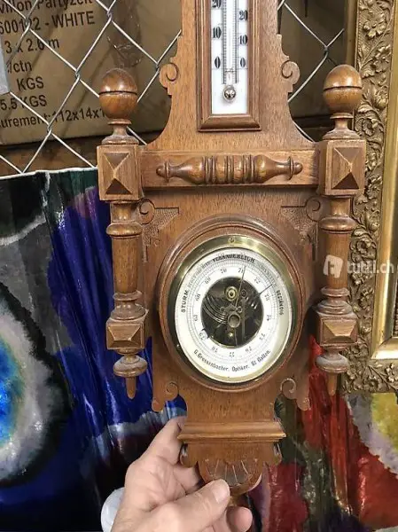 Jugendstil Barometer, Holz, 49cm hx18cm b