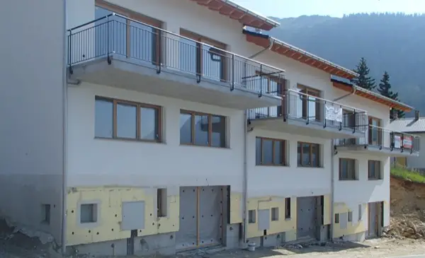 Die drei nebeneinander aber unabhängige Ferienhäuser, ökologisch und vom hohem Standard, mit uneinnehmbarer Aussicht sind nach Süden gerichtet und in einer ruhigen Lage auf einer "Sonnenterrasse" in 1650 Meter über dem Meer (MüM) gelegen. Sie bestehen aus 3 Stöcken von ca. 46 Qm/Stock (Tot: 137.41 Qm) , mit 2 Zi-Whg, grosser Wohnraum mit Küche, Service und Terrasse, 2 WC, Garage, Keller, Waschküche/tech.