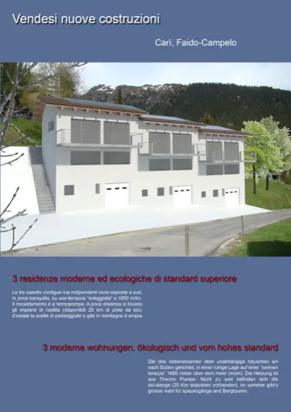 In einem der schönsten Ski-Resorts von Tessin, Carì (Faido) , wir verkaufen drei schöne und panoramische Ferienhäusern. Mit einem wunderbaren Balkon mit eine unvergleichliche Aussicht auf der Alpen, in einem sonnigen Ort und in der Nähe von den Ski-Anlagen (mit 20 km Skipisten vorhanden) . Im Sommer gibt es grosse Wahl für Spaziergänge und Bergtouren. Carì/Faido befindet sich 30 Minuten von Bellinzona und 45 Minuten von Locarno und Ascona.