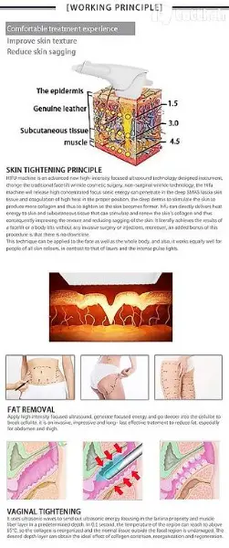 Die fokussierten Ultraschallstrahlen konvergieren und erzeugen einen thermischen Knotenpunkt. In einer viel tieferen Schicht als ähnliche LASER-Behandlungen zu erreichen vermögen.HIFU wirkt auf die Vaginalschleimhaut und das Muskelgewebe, erzeugt einen umfangreichen und gleichmässigen thermischen Effekt, erhält das sofortige Straffungs- und Lifting-Ergebnis.