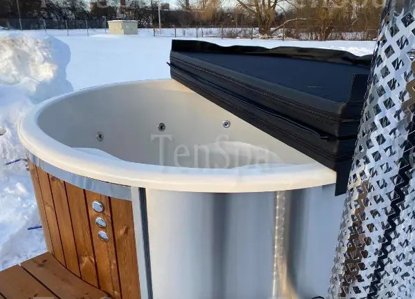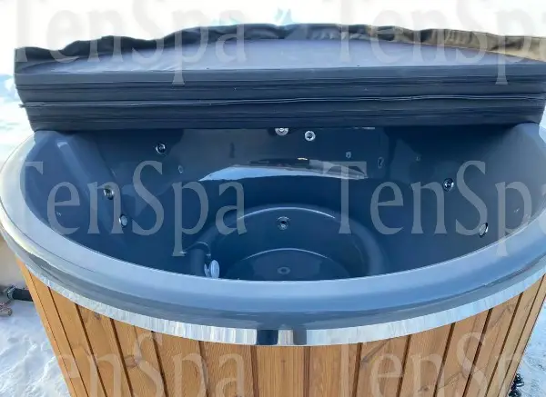 - Isolierte, rundförmige GfK-Wanne mit erhöhtem Sitz und 1, 8 m Innendurchmesser (für 4-6 Personen geeignet)