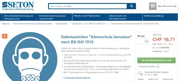 Das Schild kostet im Fachhandel über CHF 16.- zzgl, MwSt + Versand.