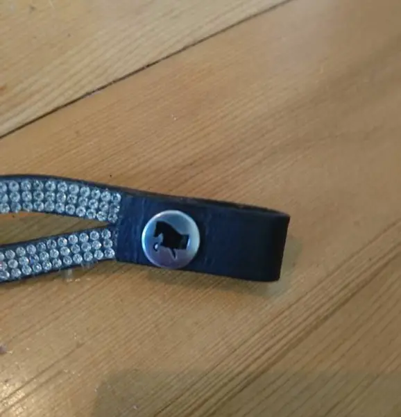 Mit vielen Glitzersteinchen, schöner Form und praktischem Druckknopf als Verschluss (hält sehr gut)