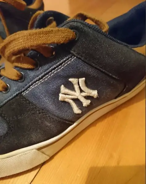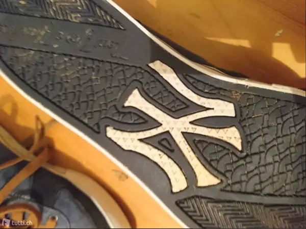 Farbe: Blau im Jeanslook, braune Schnürsenkel. New York Yankees Logo auf der Seite und auf Schuhsohle, dort auch ein NY Schriftzug.