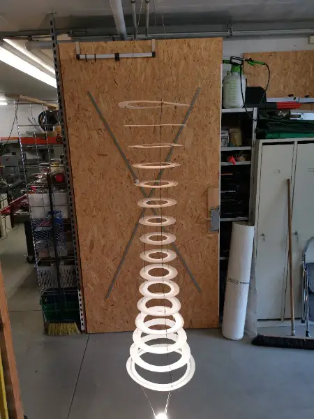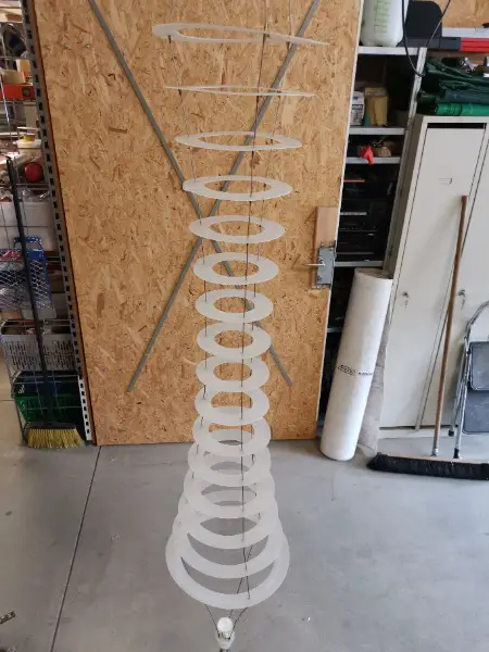 Höhe ca 2.3 m, kann auch verkürzt werden. Mit Senkel als Ziehgewicht.