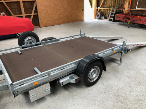 Fahrzeugtransportanhänger mit Mover zu verkaufen.