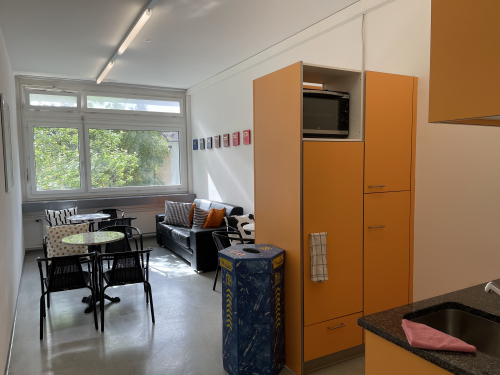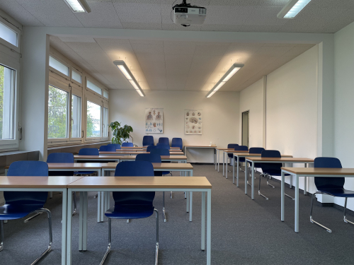 Extras: In Etage E befindet sich eine Cafeteria für die Verpflegung. Es wird warmes Mittagessen offeriert sowie Getränke und Snacks. Die Räume befinden sich in einem Gebäude mit weiteren Seminar- und Veranstaltungsräumen u. a. eine Aula mit einer Fläche von 188m2 inkl. 122 Sitzplätzen. Diese Räume können temporär gemietet werden. Eine Raumbuchung erfolgt via Website forum98.