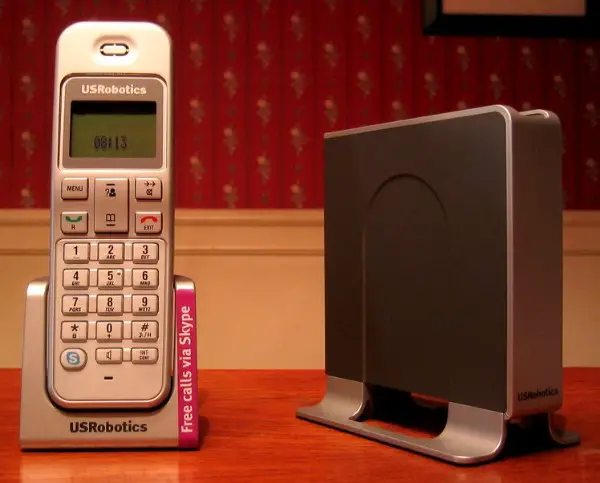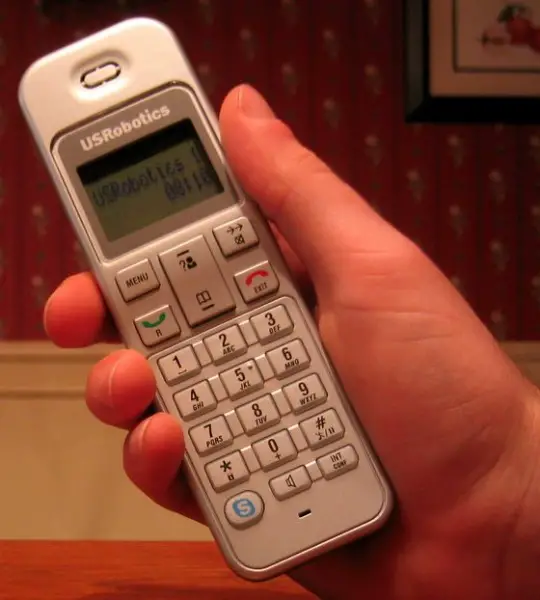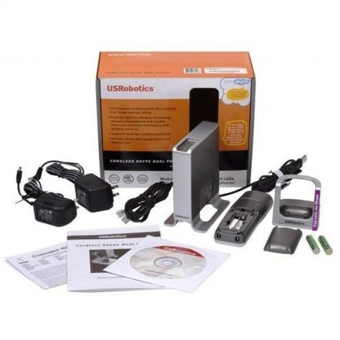Gerät: Das U.S. Robotics Cordless Skype Dual Phone USR809630 zeigt via Breitbandinternet und laufendem