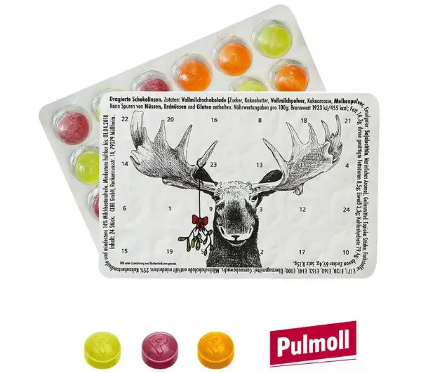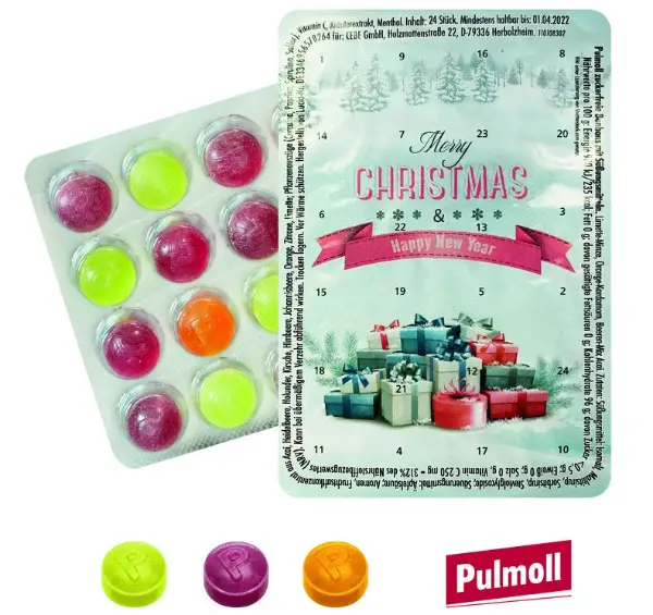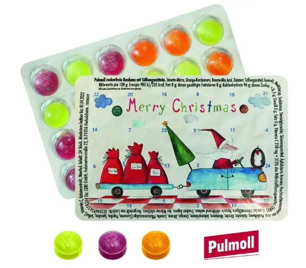 MINI-ADVENTSKALENDER MIT INSGESAMT 9 MOTIVEN, Nummern 6-9 mit Pulmoll Bonbons