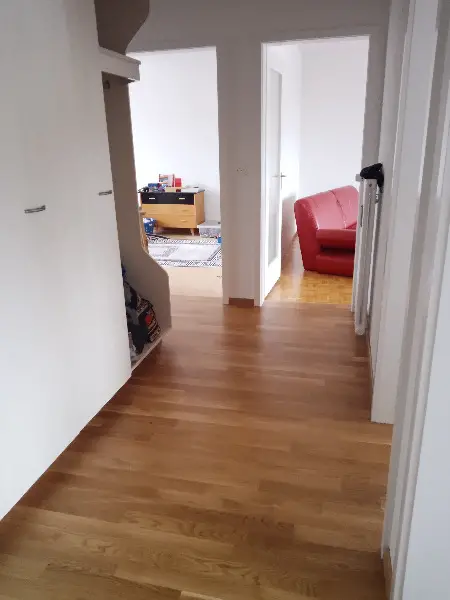 Wohnung besteht aus: sehr breiter Gang mit Einbauschrank und Garderobe, zwei kleinere Zimmer, ein grosses Wohnzimmer, ein grösseres Kinderzimmer oder Schlafzimmer, WC, separates Bad, Küche, Balkon