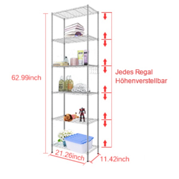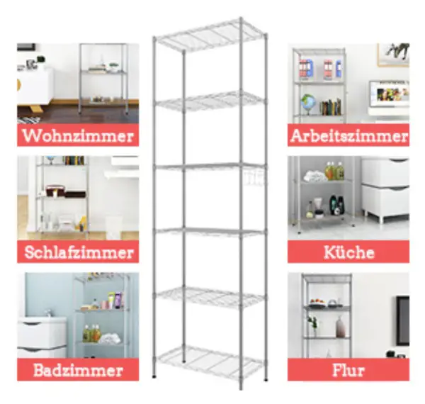 Das 6 schichte Regal ist aus verschleissfestem Stahl gefertigt, verchromt und schafft so mehr Platz für Ihr Zuhause.
