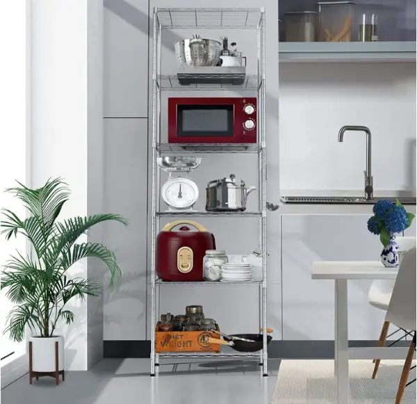 STÜRDIG UND DAUERHAFT: Das 6 schichte Regal ist aus hochfestem Stahl gefertigt und in hochglänzendem Chrom ausgeführt, hat eine ausgezeichnete Rost- und Korrosionsbeständigkeit, hohe Belastbarkeit, gute Zähigkeit, starke Stossfestigkeit, hält bis zu 220 lbs / 100 kg. Ihre Küche wird mit einer ordentlichen Umgebung hervorstechen.