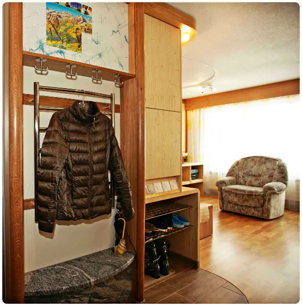 Garderobe mit Kleiderwärmer.