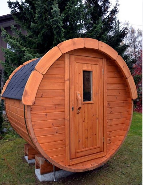 Unser neues Saunafass zeichnet sich durch seine geringe Grösse aus, welches in die kleinste Gartenecke passt.