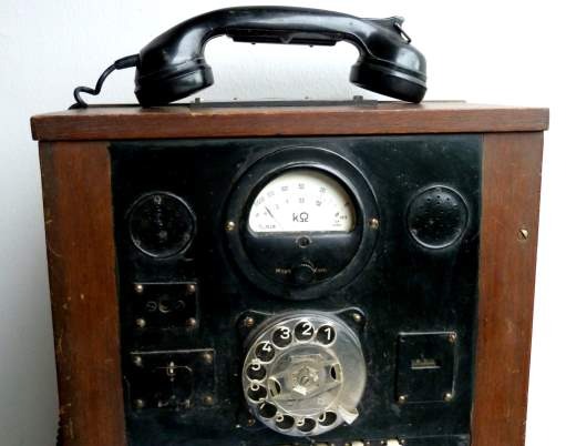 Dekoration gekauft und eignet sich hervorragend als Blickfang in einem Schaufenster. Diese Prüfstation mit Telefonhörer stammt angeblich aus einem Wehrmachtsbunker aus dem II Weltkrieg. Das Baujahr der Zentrale dürfte so um 1930-35 liegen - wer weiss wer alles diesen Hörer schon in der Hand gehabt hat.....