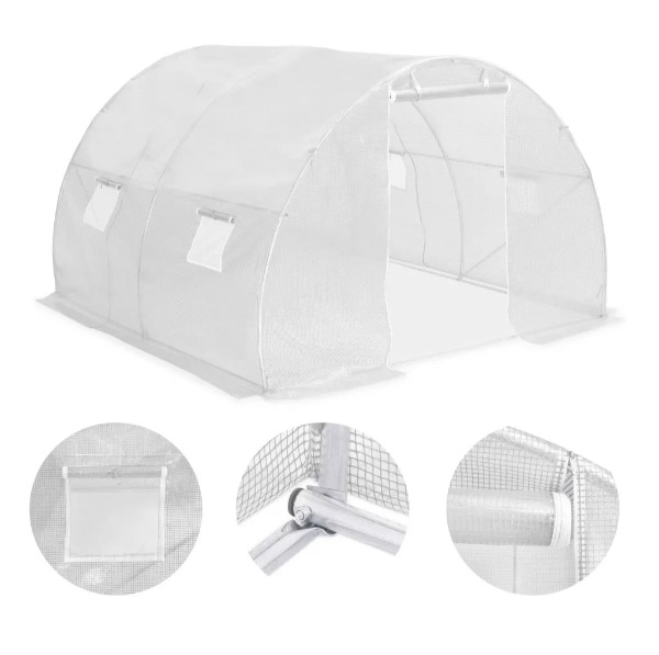 Gewächshaus kann eine erhebliche Anzahl von Früchten, Gemüsen und Pflanzen unterbringen. Dieses Gewächshaus ist eine grossartige Lösung, um Ihre Pflanzen vor Wind, Regen, starken Sonnenstrahlen und Vogelschäden zu schützen. Das Gewächshaus besteht aus 170 g/m² PE-Netzgewebe, das 25 % schwerer als das Standard-Netzgewebe vieler Konkurrenten ist. Dadurch werden Umwelteinflüsse noch besser abgeschirmt. Dieses Pflanzenhaus verfügt über einen stabilen und rostfreien verzinkten Stahlrahmen, um zusätzliche Stabilität zu gewährleisten. Dieses Gewächshaus ist mit vier 38×38 cm grossen Fenstern zur Belüftung und einer 100×185 cm grossen Tür ausgestattet. Das Gewächshaus ist leicht zu montieren. Wir empfehlen, für zusätzliche Robustheit ein Fundament hinzuzufügen. Bitte beachten: das Dach dieses Gewächshauses kann starken Schneefällen nicht standhalten.Farbe: WeissMaterial: PE (Polyethylen)-Netzgewebe und verzinkter StahlDichte des PE-Netzgewebes: 170 g/m²Abmessungen: 300 x 300 x 200 cm (B x T x H)Mit 4 Seitenfenstern und 1 TürGrösse des Fensters: 38 x 38 cm (L x B)Türgrösse: 100 x 185 cm (B x H)