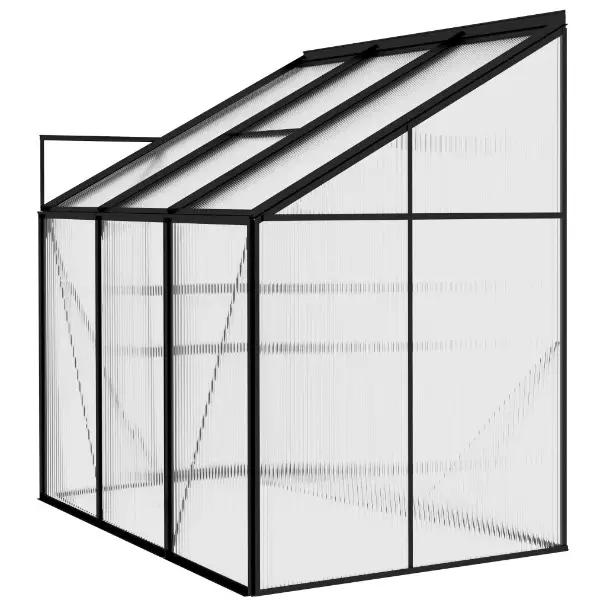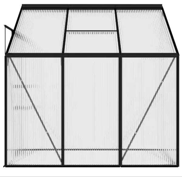 Platte, die durchsichtig ist und es Ihnen ermöglicht, das Wachstum der Pflanzen zu beobachten. Das Gewächshaus verfügt über eine robuste und wartungsfreie Aluminiumkonstruktion für zusätzliche Stabilität. Die Dachentlüftung sorgt an heissen Tagen für optimale Belüftung. Dachpaneele werden mit Metallklammern befestigt, um Haltbarkeit und Langzeitgebrauch zu gewährleisten. Bitte beachten Sie, dass der Fundamentrahmen nicht im Lieferumfang enthalten ist und dass das Dach dieses Gewächshauses starkem Schneefall nicht standhalten kann.