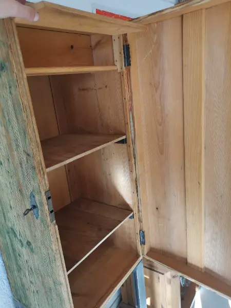 Im inneren wurden Tablare gefertigt die Höhenverstellbar sind und viel Gewicht aushalten. Oben ist eine Ablage mit Klapptüre (Siehe Foto) .