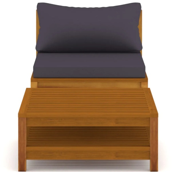 Sitzkissen-Dicke: 6 cmRückenkissen-Dicke: 15 cmZusammenbau erforderlich: JaLieferung enthält:1 x Sofa-Mittelteil1 x Tisch1 x Sitzpolster1 x Rückenkissen