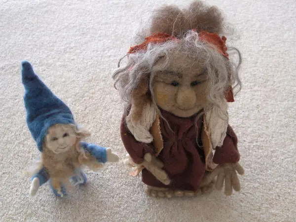 (3 grosse Wichtel: je ca. 22cm hoch, Kleiner Wichtel: ca. 12 cm hoch).