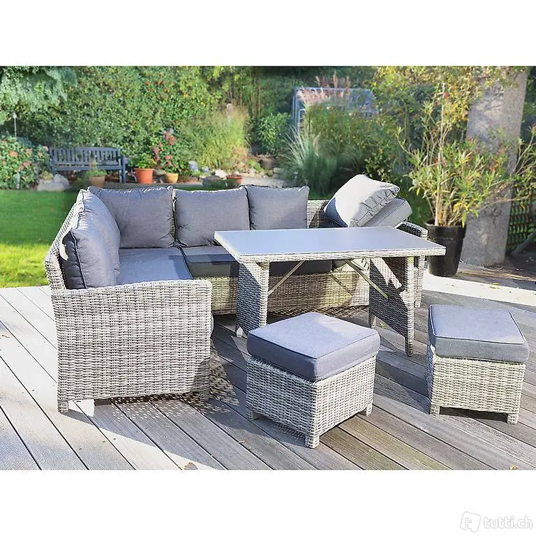 - 1 x Gartentisch inklusive 7 Sitzkissen