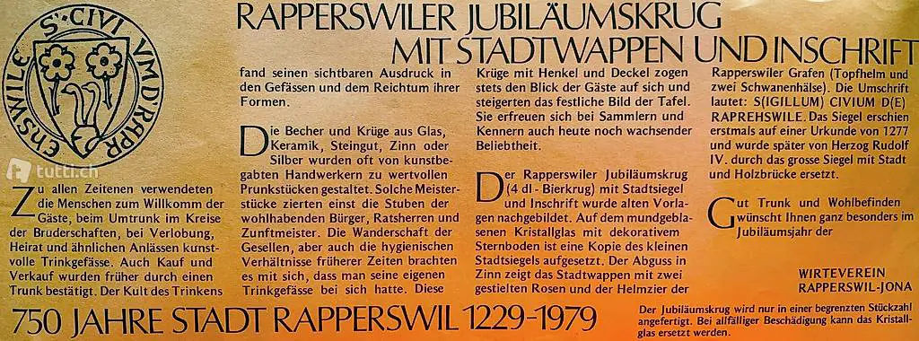 Rapperswiler Jubiläumskrug - Handarbeit