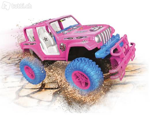 Style deinen Crossroad Amazone individuell mit den verschiedenen beiliegenden Aufklebern. Offenes Dach. Fernsteuerung 2,4 GHz, Reichweite bis zu 25 m, Spielzeit ungefähr 25 Minuten. Masstab 1:14. 8km/h - entspricht 112km/h.