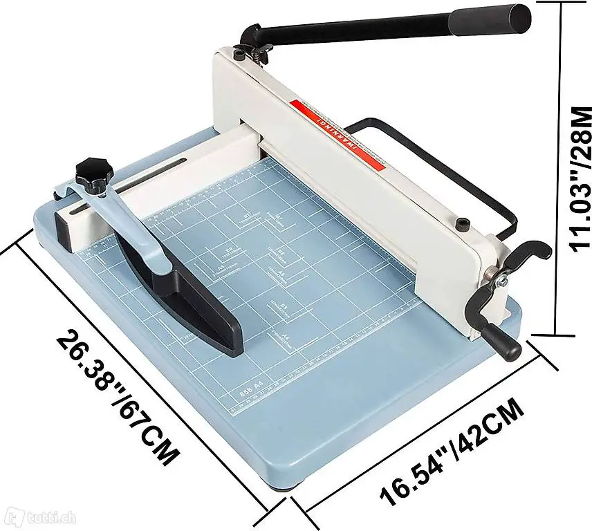 BREITE ANWENDUNGEN: Die Basis des Guillotine-Metallschneiders besteht aus hochwertigem Stahl. Wir können die Guillotinenschneider verwenden, um Papiere verschiedener Grössen zu schneiden, einschliesslich A3, B4, A4, B5, A5, B6, B7. Es ist für viele Arbeitsplätze notwendig.