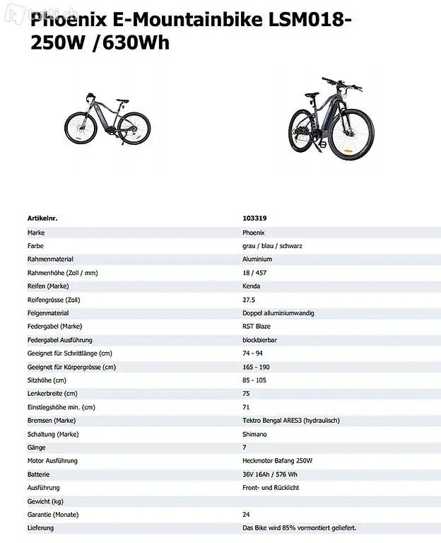 Phoenix E-Mountainbike LSM018-250W /630Wh - 103319