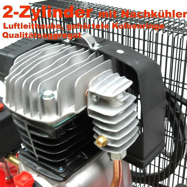 Hochwertiges riemengetriebenes 2-Zylinder Industrieaggregat mit Nach- und Zwischenkühler und gehärteten Kolbenringen und Edelstahlventilen,