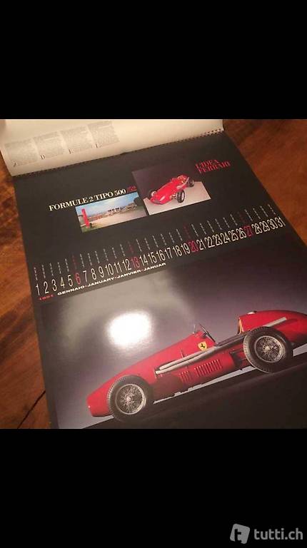 Der Kalender dokumentiert die einzigartige Ferrari-Ausstellung L'Idea Ferrari von 1990 in Florenz.