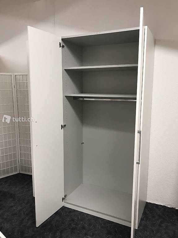 Inkl. Inneneinteilung: 5 schmale Tablare, 2 breite Tablare und breite 1 Kleiderstange.