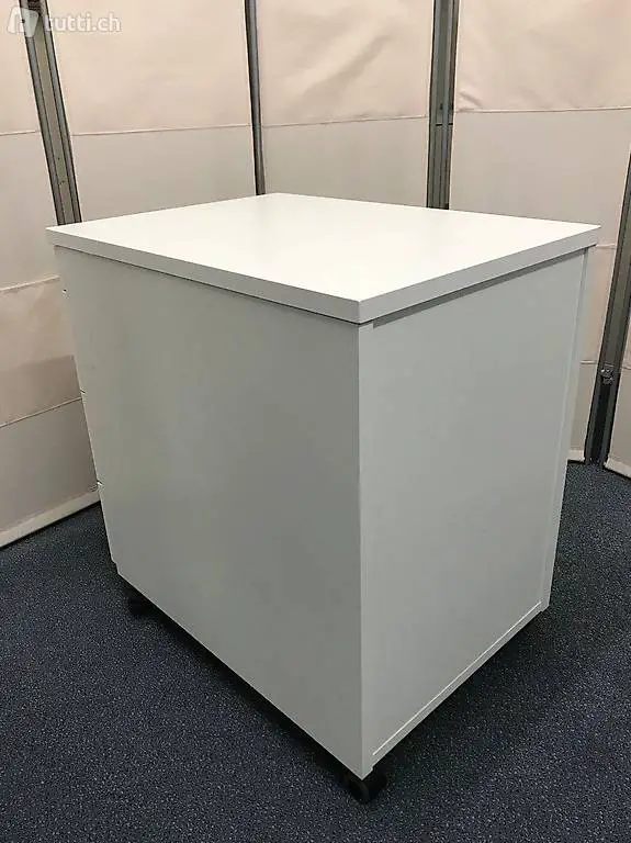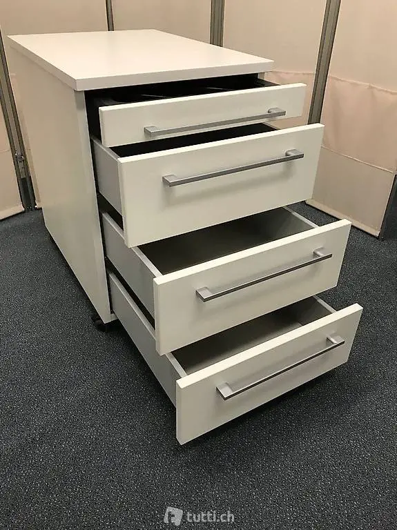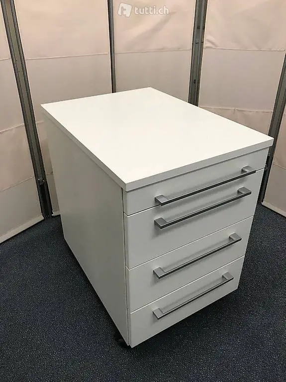 Rollkorpus «Color Fun/Office» Decor weiss, 1 Materialschieber und 3 Schubladen mit Slow-Motion-System (gegen Aufpreis auch mit Hängeregister erhältlich) . Die widerstandfähige Oberfläche ist pflegeleicht, lichtecht und weitgehend kratzfest. Hergestellt in der Schweiz von Omlin.