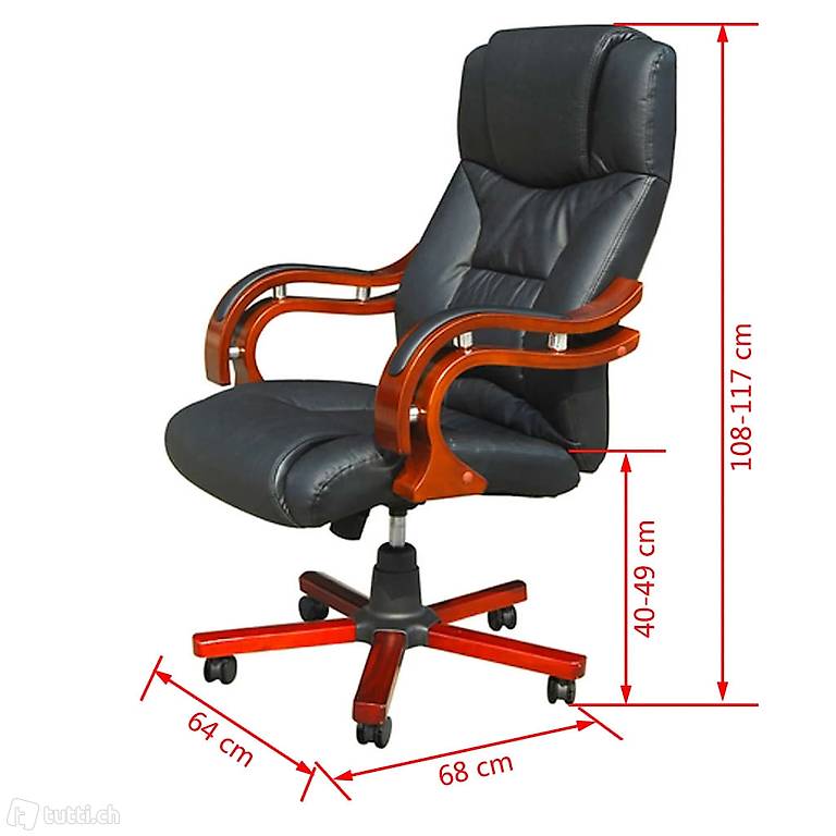 Echtholz mit Auflage. Ausgeklügelte Kippmechanik, auf Ihr Körpergewicht individuell anpassbar. Stufenlose Sitzhöhenverstellung Technische Daten: Farbe: Schwarz Masse: ca. 64 x 68 x 108-117 cm (L x B x H) Masse der Rückenlehne: 51 x 72 cm Masse der Sitzfläche: 51 x 51 cm Sitzhöhenverstellung: ca. 40 - 49 cm